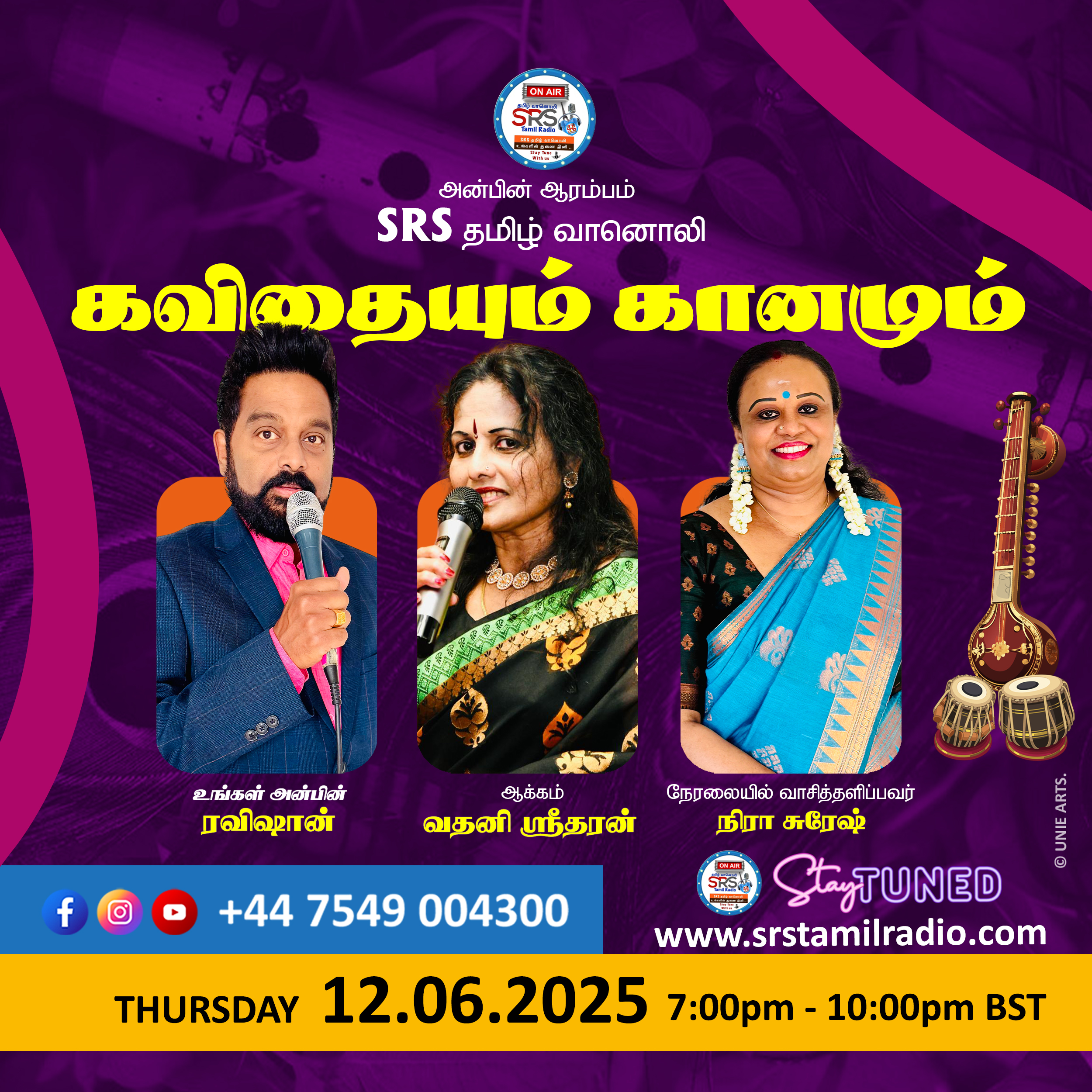 Live Shows கவிதையும் கானமும் நிகழ்ச்சி 12.06.25 கவிதையும் கானமும் நிகழ்ச்சி 12.06.25 June 11, 2025 / SRS admin / 0 Comments