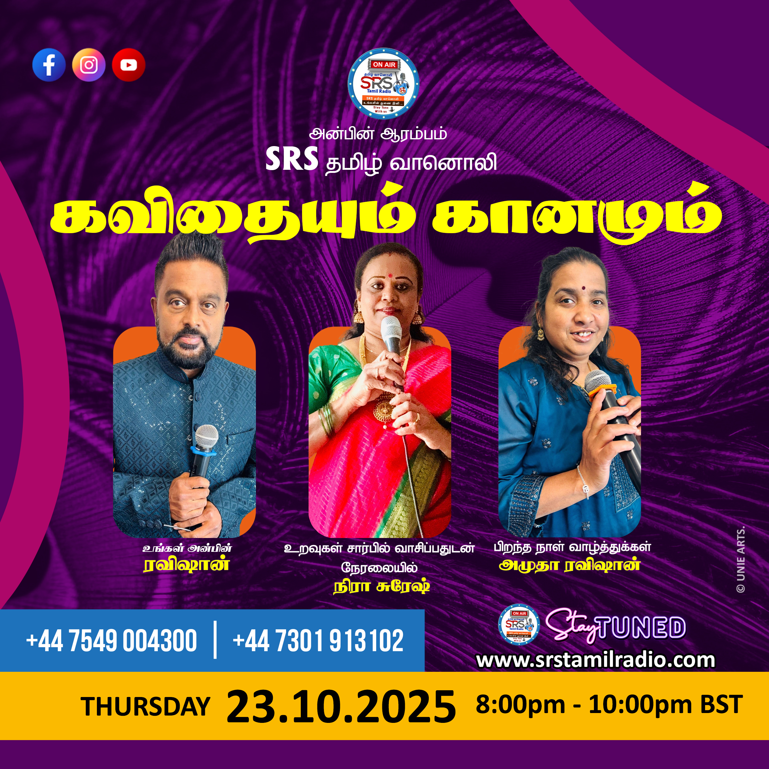 Live Shows கவிதையும் கானமும் நிகழ்ச்சி 23.10.25 கவிதையும் கானமும் நிகழ்ச்சி 23.10.25 October 21, 2025 / SRS admin / 0 Comments