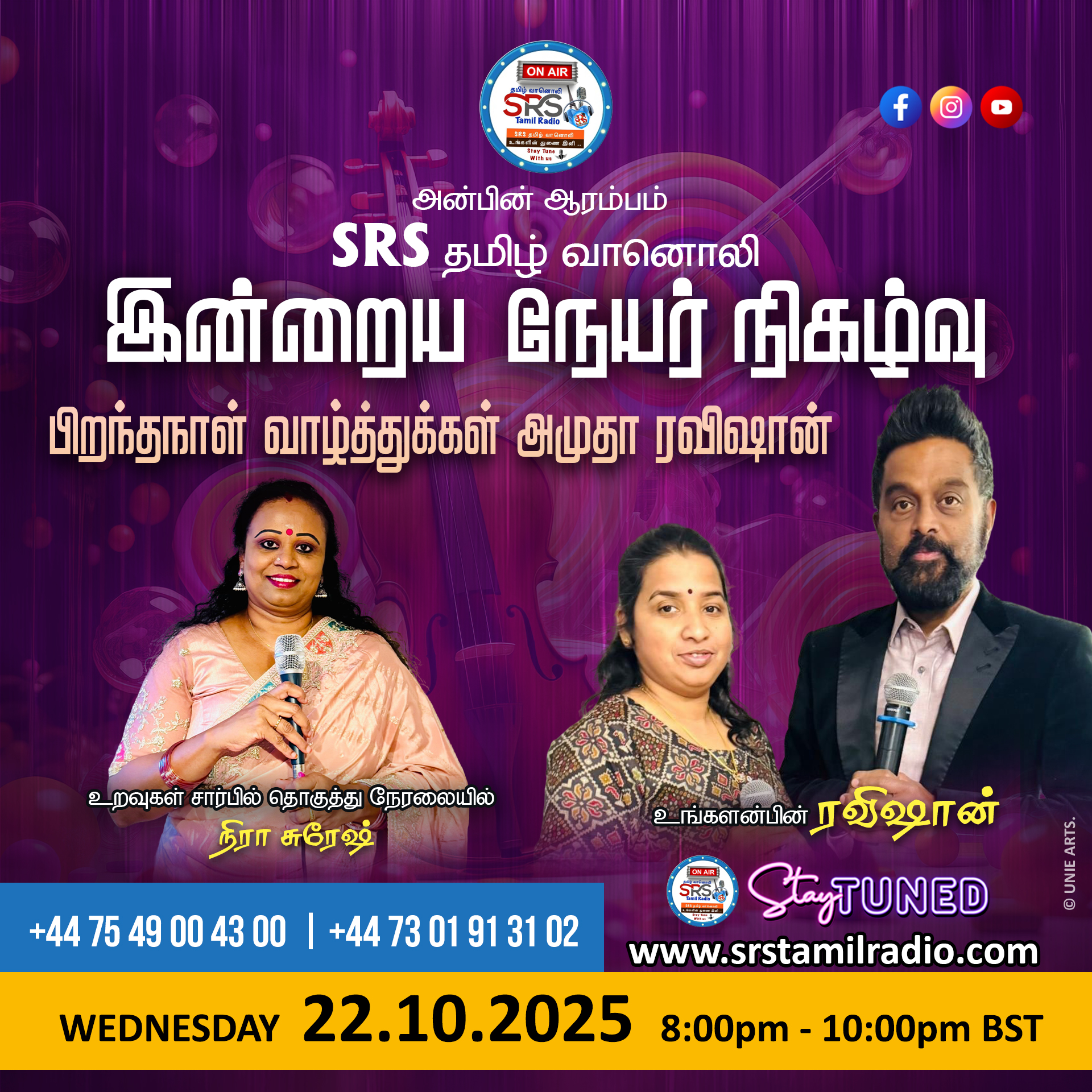 Live Shows இன்றைய நேயர் நிகழ்ச்சி 22.10.25 இன்றைய நேயர் நிகழ்ச்சி 22.10.25 October 21, 2025 / SRS admin / 0 Comments